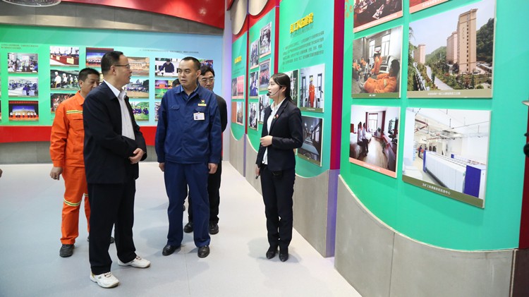 孫偉先后深入停機坪、尾礦庫、1190主平硐口、科技中心等地調研。調研期間,孫偉聽取了陪同人員關于項目建設內容、資源儲量、發展遠景、尾礦庫安全管理等情況的詳細匯報,詢問了在井作業人員、井下提升運輸系統和采礦安全管理情況后,還就采礦充填系統的工藝技術與公司采礦生產負責人進行了交流。在融礦業文化與科普宣傳為一體的展覽館,孫偉駐足在金徽企業關愛員工的通告牌前,他饒有興趣的對17項免費福利措施進行了逐一了解,并隨機向講解員詢問了住房、就餐、工資待遇等具體情況,當講解員滿臉笑容指著照片回答道:“我已經住進了花園式的員工公寓,我家就在這棟樓。在公司我們還免費享受非常多的福利待遇,比如生日禮金、長者慰問金、新婚禮金……”時,孫偉笑著說道:“不錯、不錯,從金徽員工臉上洋溢著的幸福和自信,我們就看得出,金徽股份確實把人本理念落到了實處。”