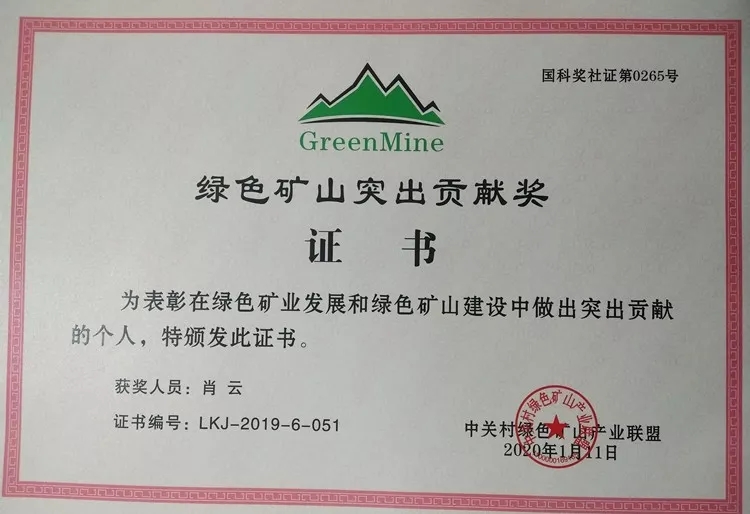綠色礦山突出貢獻獎是經(jīng)科技部國家獎勵辦公室批準,受政府支持的面向綠色礦山建設一個新的獎項,也是我國專門針對綠色礦山建設設立的國家級獎項。